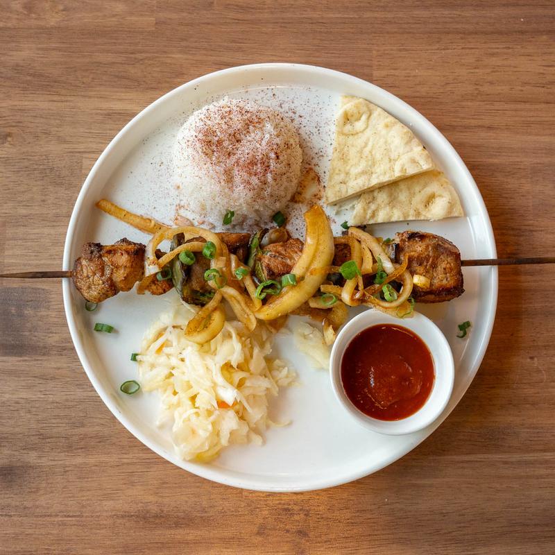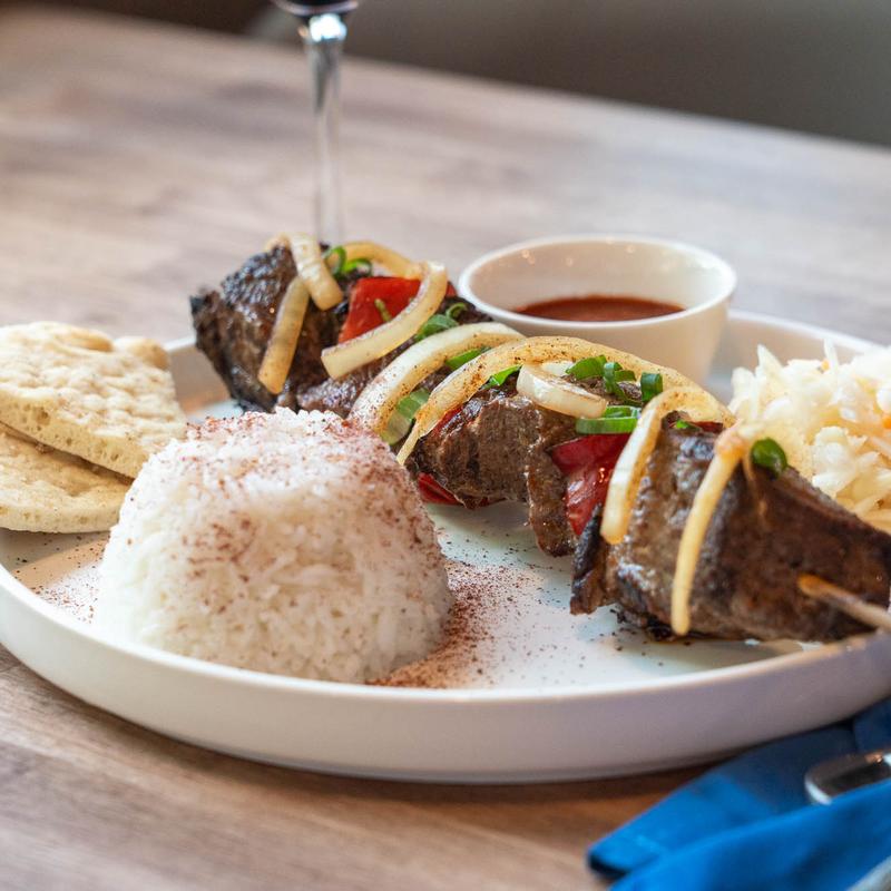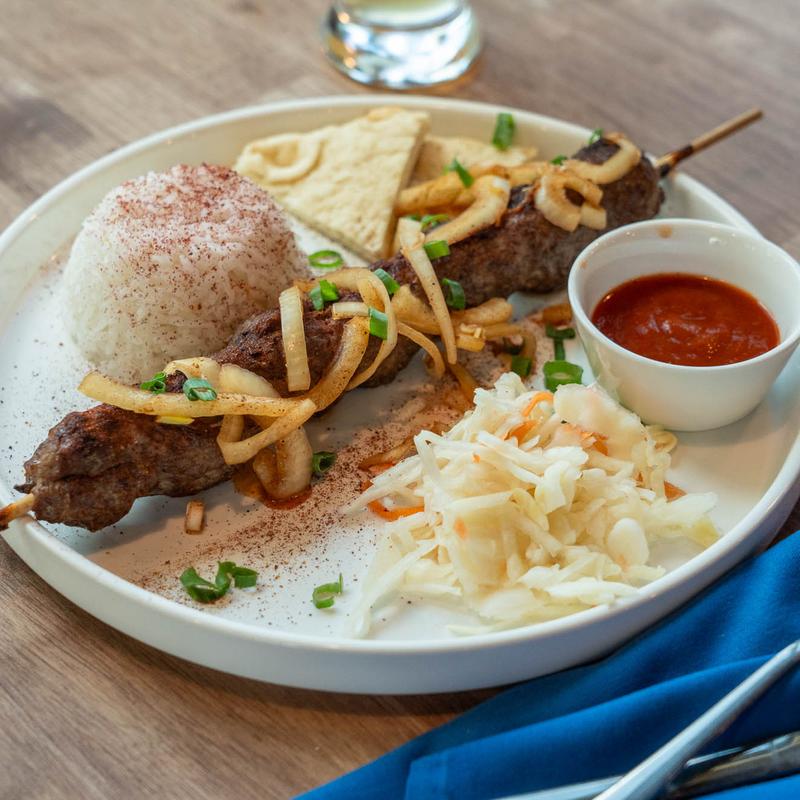 Ground lamb marinated with spices, grilled to perfection, and served with lavash, sour cabbage, rice and our signature sauce