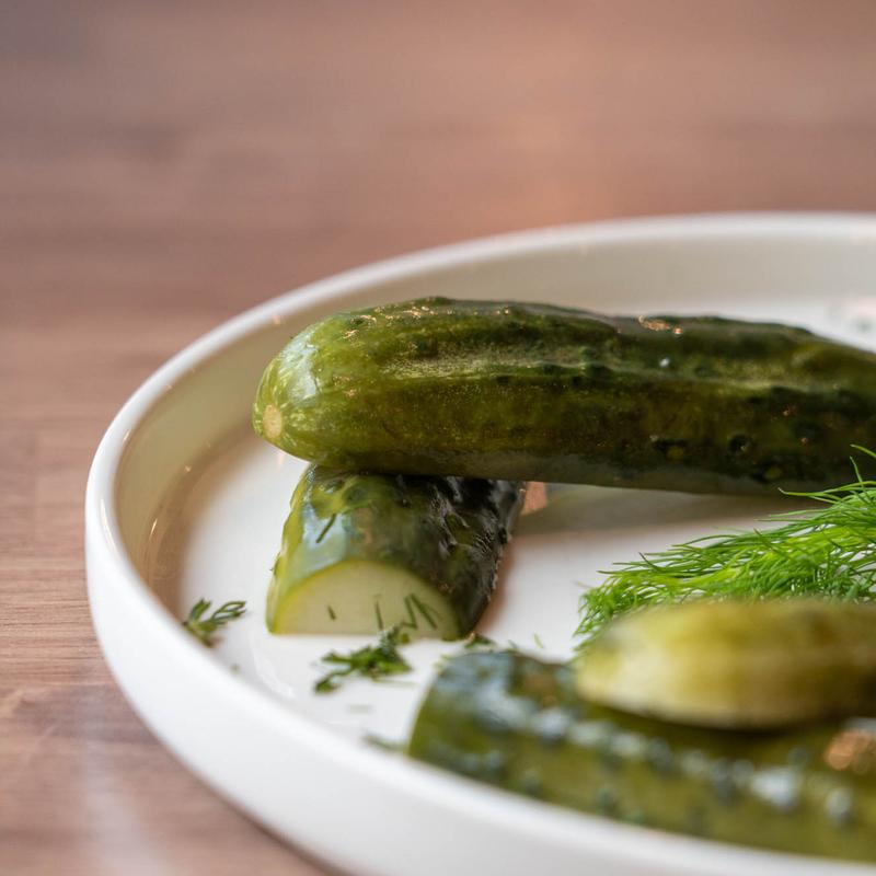 Crisp Cucumbers seasoned with a touch of Salt, Dill and Garlic