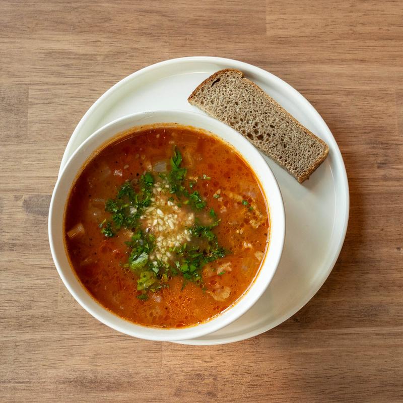 A rich, hearty Georgian beef stew with rice, tomatoes and a fragrant mix of spices.
